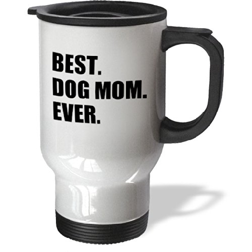 3dRose tm_184993_1 Best Dog Mom Ever Fun Pet Owner Gifts for Her Animal Lover Text Travel Mug, 14-Ounce, Stainless Steel