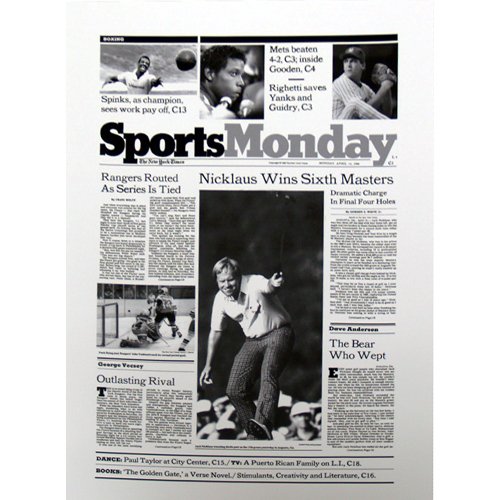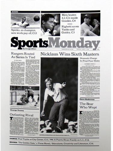 New York Times Reprint April 14 1986 Jack Nicklaus' Sixth Masters