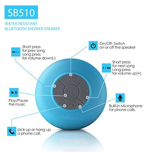 -. Title : J-deal® Hd Water Resistant Bluetooth 3.0 Shower Speaker Handsfree Portable Speakerphone with Built-in Mic, 6hrs of Playtime, Control Buttons and Dedicated Suction Cup for Showers, Bathroom, Pool, Boat, Car, Beach, & Outdoor Use