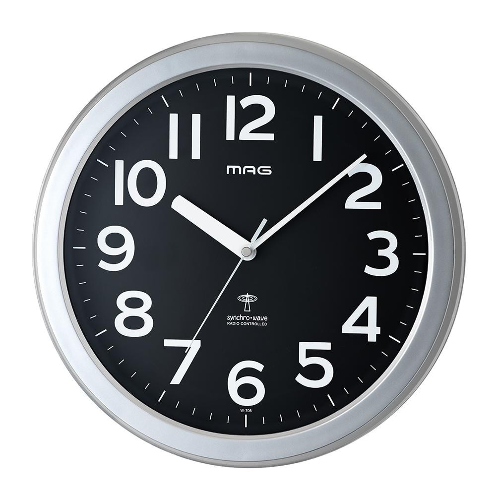 時刻を自動で修正する電波時計です。しっかり時を刻むステップ秒針。夜に秒針がコチコチ動かない「夜間秒針停止機能」付きです。 製造国:中国 ※サプライヤー直送品 ご注文後5~6営業日後の出荷となります【商品名】MAG(マグ) 電波壁掛け時計 ロズベルグ 銀メタリック W-705 SM-Z