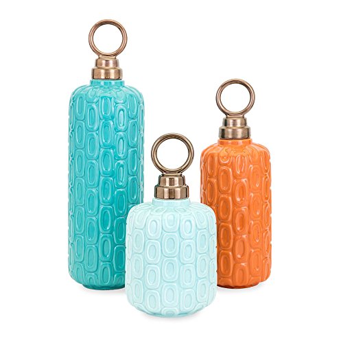 Benzara Leander Ceramic Jars-Set of 3-Multi Color