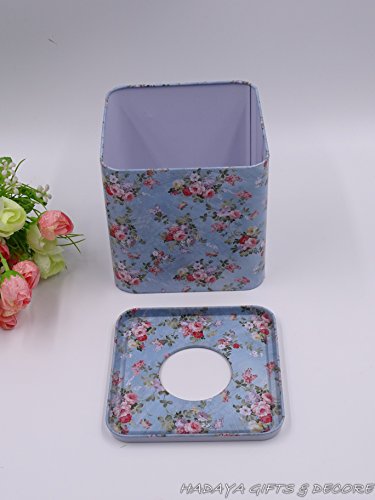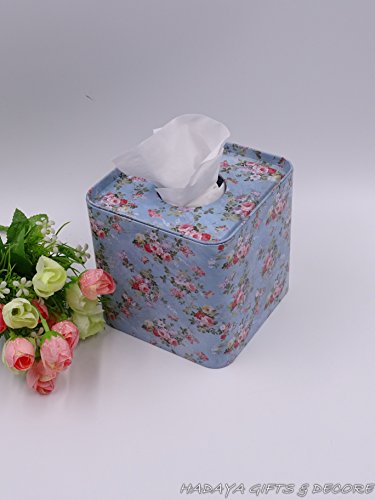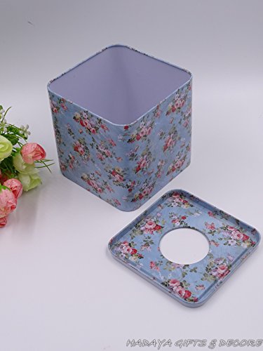 Decorative square shapped Tissue Box Cover tin Sky Blue Color with very beautiful Floral desgin Shabby Chic