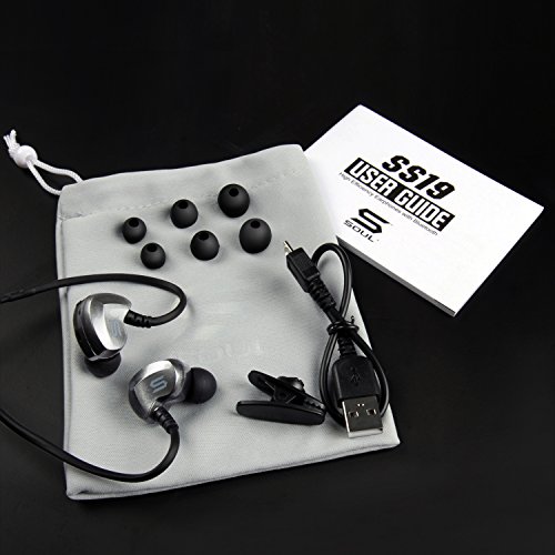 -. Feature : ◆Signature Sound Quality --- Two powerful 8mm dynamic neodymium drivers are designed to deliver the SOUL's signature sound of balanced deep low bass without sacrificing the clarity of the mids and highs. / ◆Ultra-Light & Portable --- Weighting just 0.5oz (15 g). SS19 Sports Earbuds come with cable clip and pouch for easy cable management and safe storage. Convenient to carry it along with you anytime and anywhere. / ◆Secure fit & Comfort --- Adjustable wire to keep SS19 stay on comfortably and securely. Package includes four sets of soft ear tips (XS, S, M, L) for a precision fit which provide total isolation from external noise. / ◆Water/Sweat Proof --- Engineered with sweat proof function to give you added protection from sweat and water during the most arduous workout and outdoor activities. No worry about sweat, rain or even the splashes of your sport drinks. / ◆Up to 6 hours of Playtime--- Long enough for a week of workouts, almost two marathons or a single flight from Seattle to New York. With the universal mic, it's only a click away to make calls, pump up/ down the volume.
