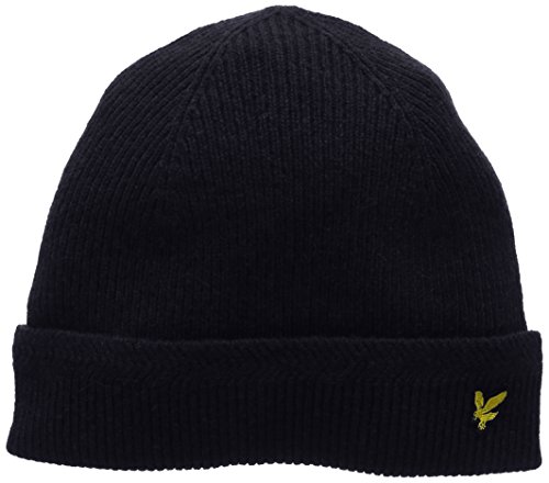 Lyle & Scott Blau Racked Rib Logo Beanie.