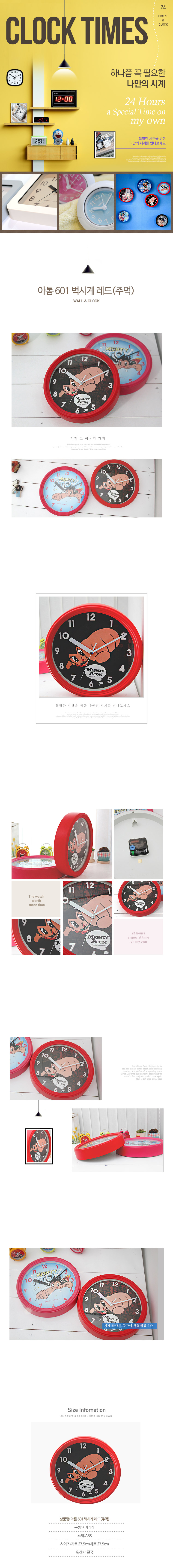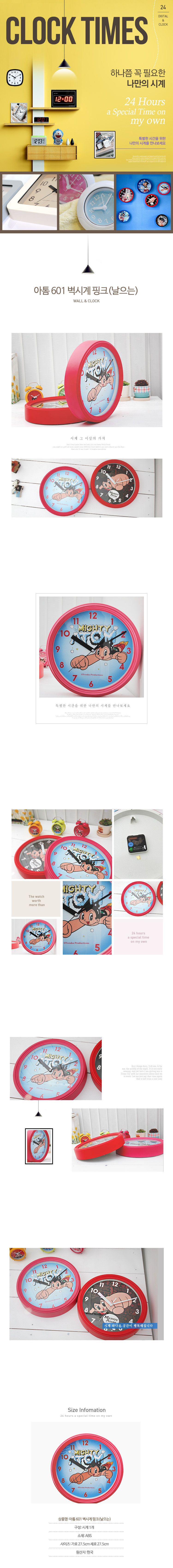 - 품명 및 모델명아톰 601 벽시계 핑크(날으는)