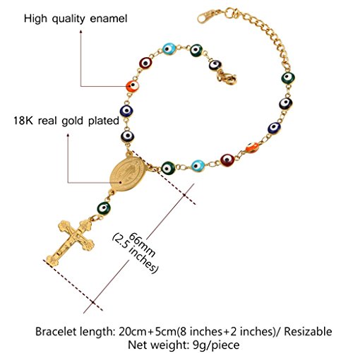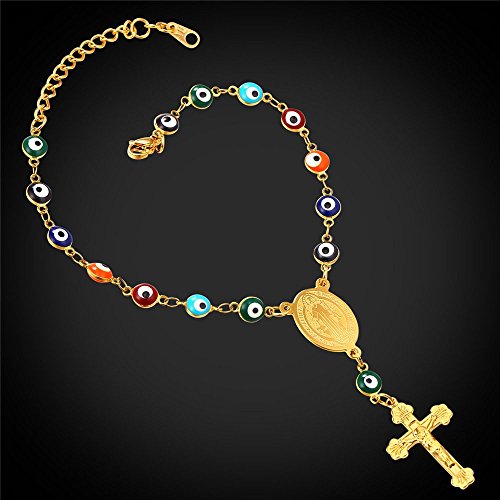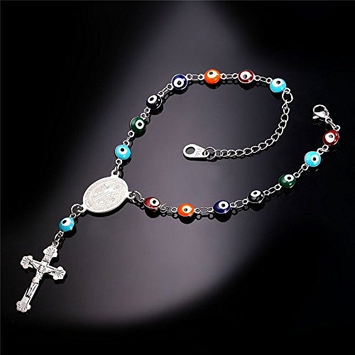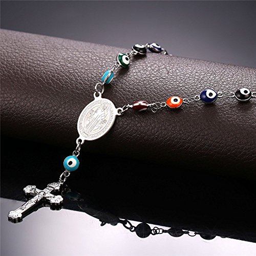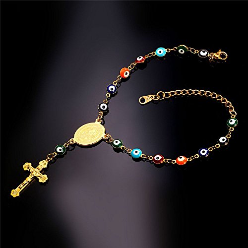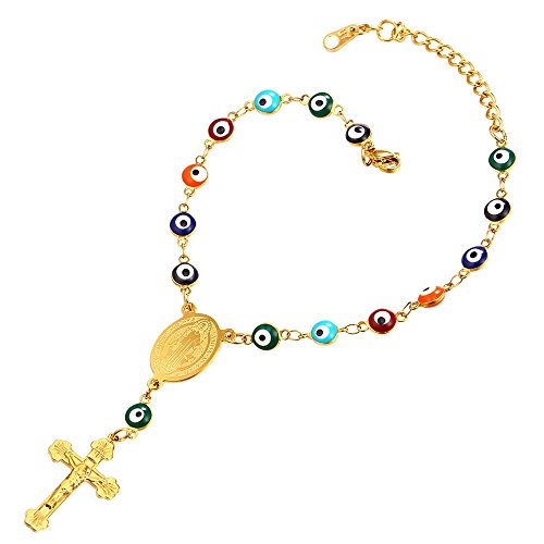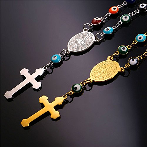 -. Title : U7 Turkish Evil Eye Bracelet Stainless Steel/18K Gold Plated Chain St Benedict Medal and Crucifix Cross Rosary Bracelet