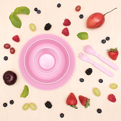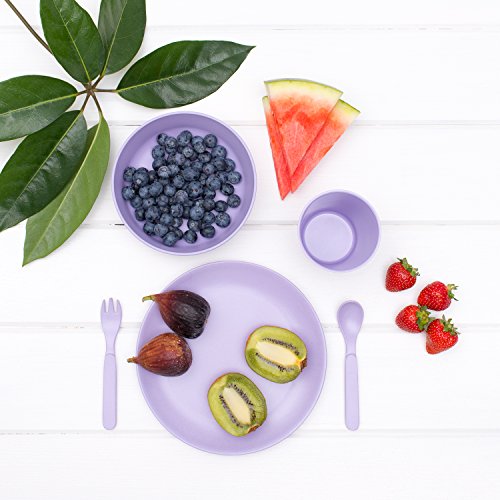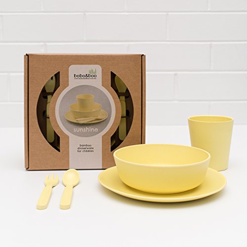 -. Feature : 5 PIECES, 1 AFFORDABLE P.R.ICE: Perfectly sized for little fingers and all ages, your kids dinnerware set comes complete with bowl, plate, cup, spoon & fork. 1 bowl (D150mm*H45mm), 1 plate (D200mm*H12mm), 1 cup (D81mm*H85mm), 1 spoon+fork (L140*W34mm / L135*W25mm) / NO WORRIES ABOUT TOXINS: Concerned about plastic chemicals? Don't be. These toddler dishes are made of natural bamboo. They're non-toxic, FDA approved & BPA free. / ECO-FRIENDLY & EASY TO CLEAN: Your bamboo dishes are renewable & sustainable. Great for picnics, outdoor parties & at home. After use, just put them in the dishwasher (top rack) for quick cleaning. / GROWS WITH YOUR KIDS: This mealtime set features classic colors, so your children will use them for years. Lightweight & highly versatile. Adults love them, too. Mix & match our full line of colors. / MONEY-BACK GUARANTEE: We know you'll enjoy having a healthier way to feed your family. However, if you aren't completely satisfied with your dish set, return it within 30 days for a full refund.