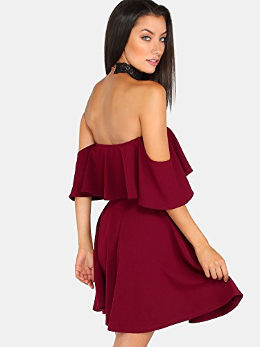 Off the shoulder, ruffle details, skater style, solid color, fit for everyday dressing and party