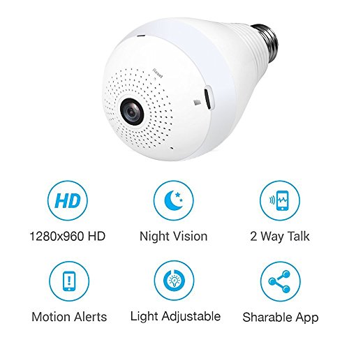 -. Title : Wireless Wifi Camera 360 Degree Wide View Panoramic Fisheye Camera HD Indoor Home Monitor with LED Bulb Night Vision Two-way Audio Motion Detection Hidden Bulb