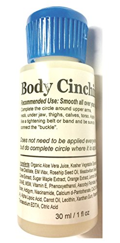 SAMPLE - ModelSupplies Body Cinching Lotion Tighten the skin on your body now. Use while you lose weight to tighten the loosening skin~! Avoid needing surgery after your weight loss. I have personally lost over 45 lbs recently and have NO HANGING SKIN WHATSOEVER because I have used this all along. I only use it when I come out of the shower. It's not a big time commitment. You could probably glean greater results if used more often, but I am living proof that it is not necessary. 30 ml. / 1 oz. SAMPLE Size! Nice! FINALLY! Non-Greasy Formula delivers all the right things to all the right places! Use after every shower. It's a Cinch~! ...Body Cinch for the skin on your body... Nurtures your skin. Restores, enhances and supports elasticity. Do you want to have the smoothest, silkiest, healthiest skin you can have? This is it~! Top of the Line! APPLY ONLY A SMALL AMOUNT AFTER EVERY SHOWER. SAMPLEFeature