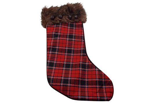 Red and Black Plaid Stocking with Faux Fur and Bells