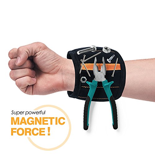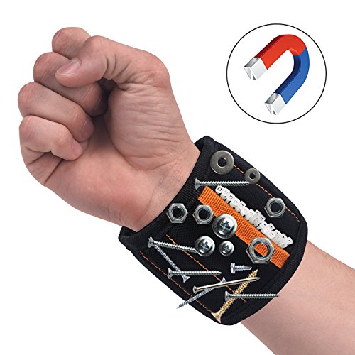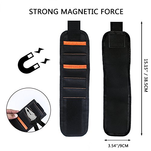 Magnetic Wristband, 15 Strong Magnets Strap for Holding Screws Nails Drill Bits Potable Tool Gift with Comfortable Velcro Fit by SKY CASTLE Portable for DIY, Handyman, Home Projects, and more