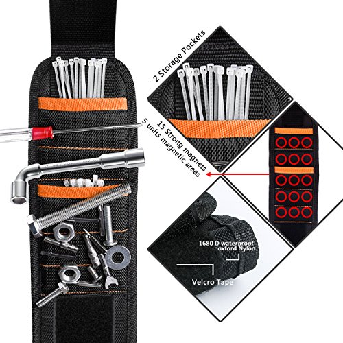 - 【Better Details】 This Magnetic Wristband equipped 15 powerful Magnets, and two utility pockets, which makes the wristband much more powerful and more convenient than similar products on the market.