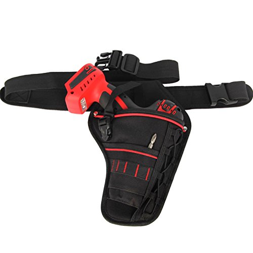 - PACKAGE INCLUDES - a drill holster and a belt. This tough drill holster also has added pockets & elastic loops to hold bits, chuck key, drivers, etc.