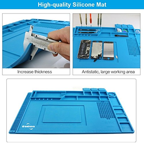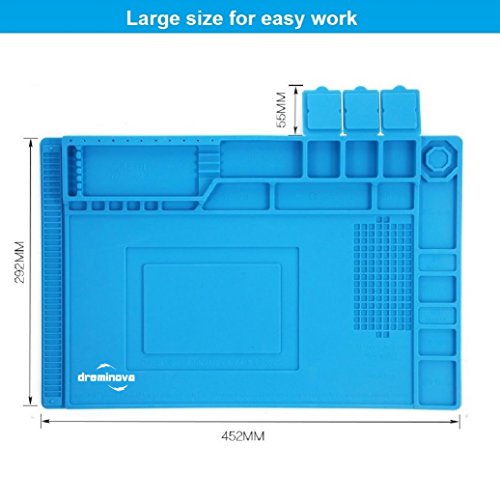 DREMINOVA Heat Insulation Soldering Mat/Pad 17.7 x 11.8 inch, Large Silicone Magnetic Phone Desk Station Repair Resistant Soldering Iron, Gun BGA, with Scale Ruler and Screw Position, Gift for Techie