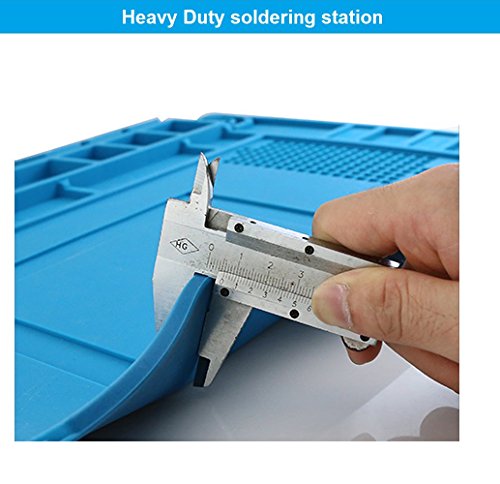 - MULTI FUNCTION SILICONE PAD ✓ structures with a circuit board location, a screw location, 3 parts compartments with covers, a magnetic tools area, 3 magnetic parts areas, 7 non-magnetic parts areas, 42 spare cells and Built-in scale ruler (0 ~ 36 cm ) on the bottom section, make your repair work easy. A good partner for a hot air gun.