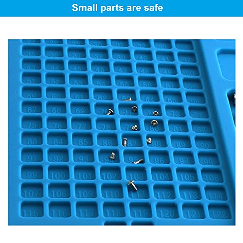 - UNIQUE PERFORMANCE ✓ Totally clean from factory, in perfect condition. The soldering silicone mat has Screw Location with 124 tiny cells, can place and secure 124 different screws in order,do not worry about losing little things,this mat is an ideal product for soldering electronics, assembly electronics, and circuit board repair: smart phone, laptop, computer, camera, sports watch, etc.