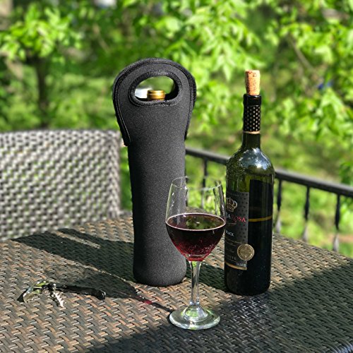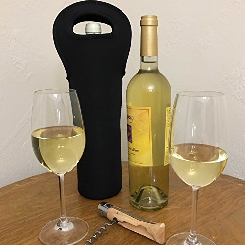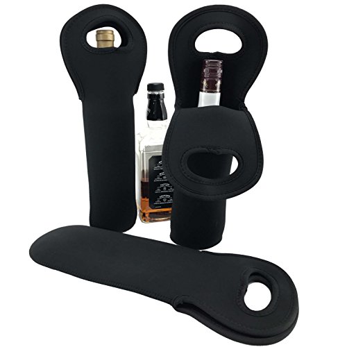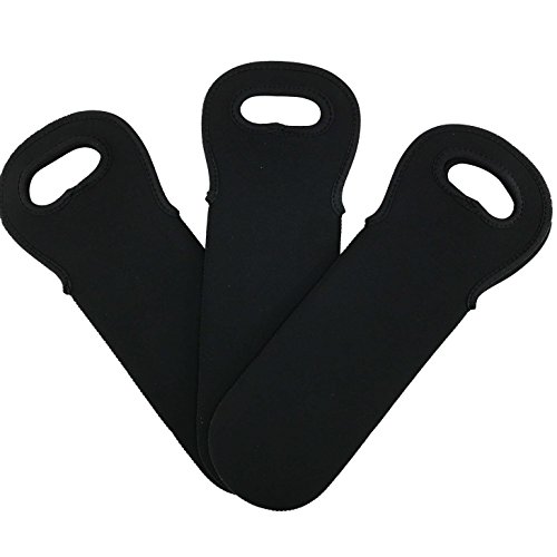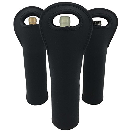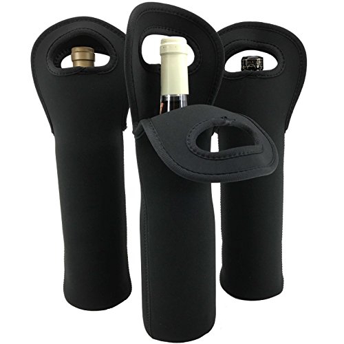 Wine Sleeve Tote Bag 3-Pack Insulated Neoprene Bottle Carrier by Bever Products (Black)