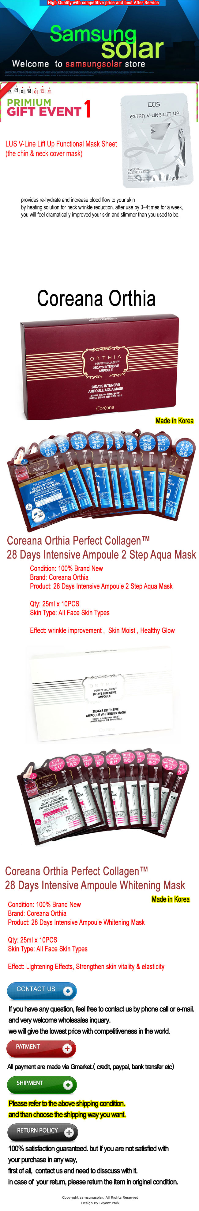 Coreana Orthia Perfect Collagen 28 Days Intensive Ampoule Aqua Mask 10pcs or Whitening Mask 10pcs