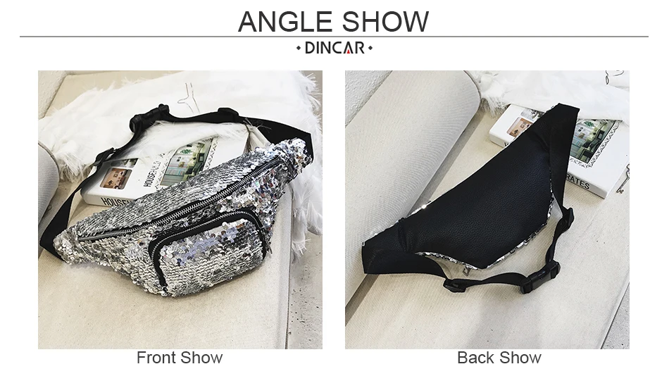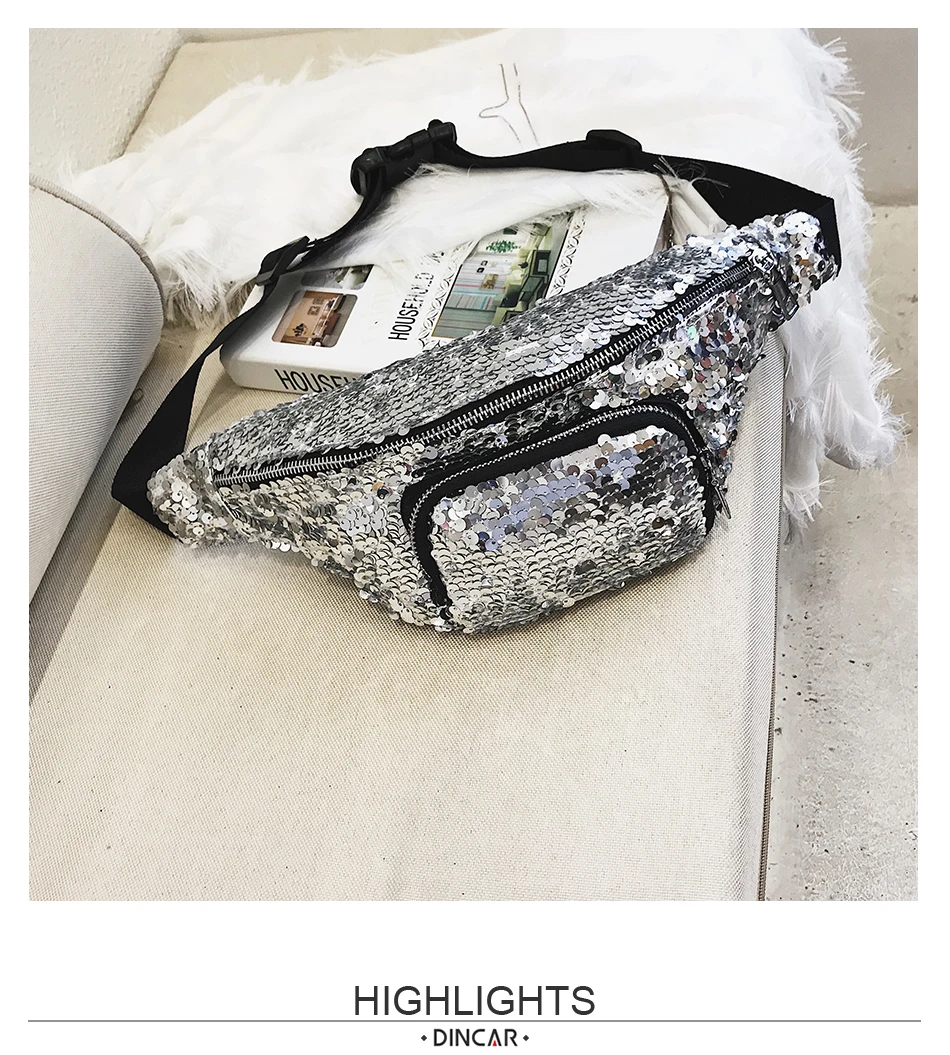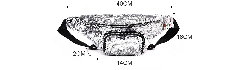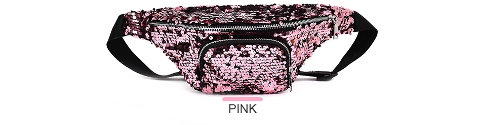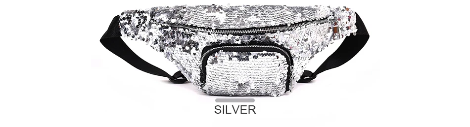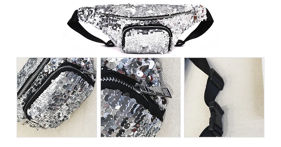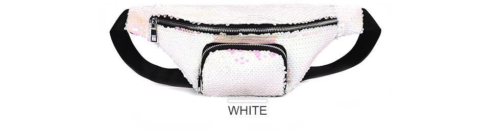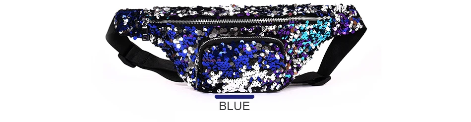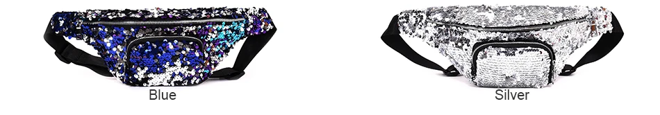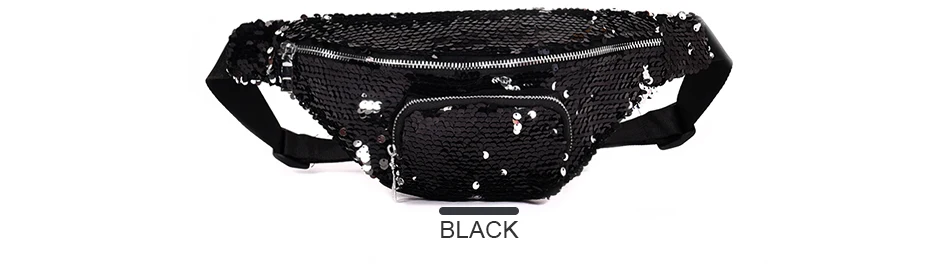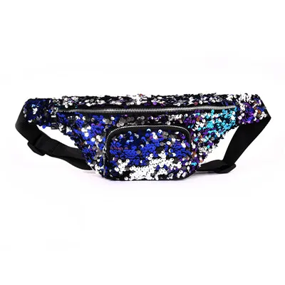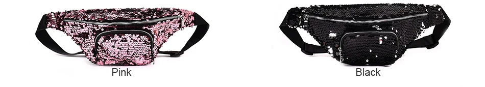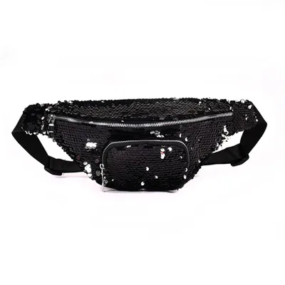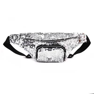 Casual Double Color shiny Sequins bag:Unisex Waist fanny pack belt bag men