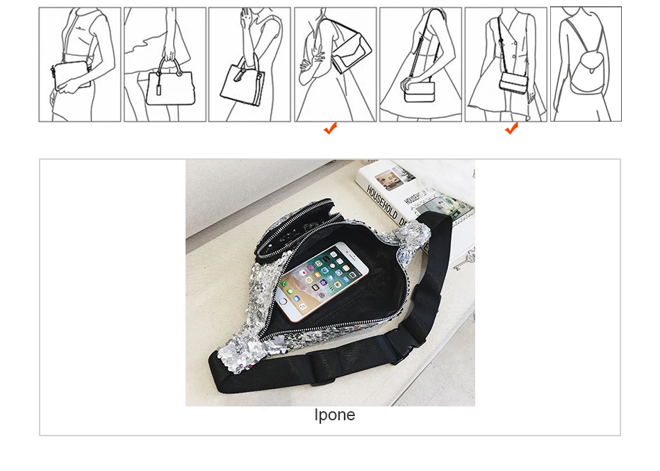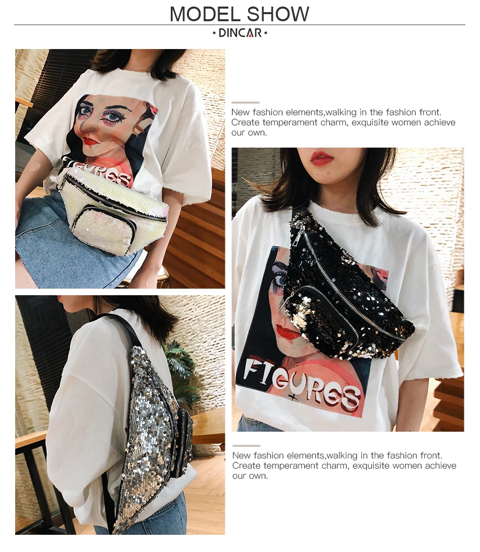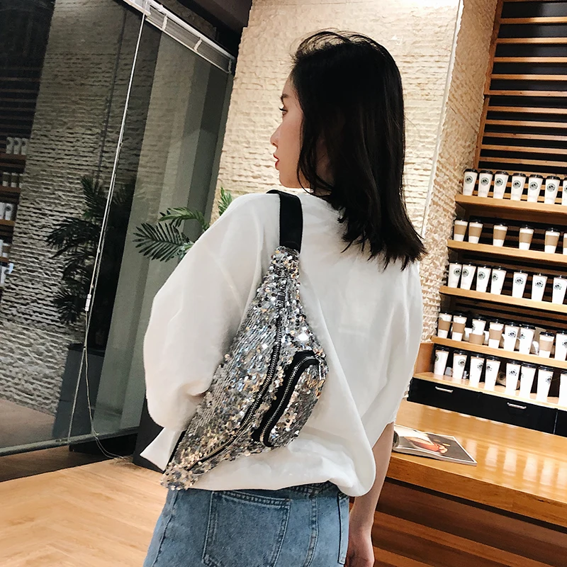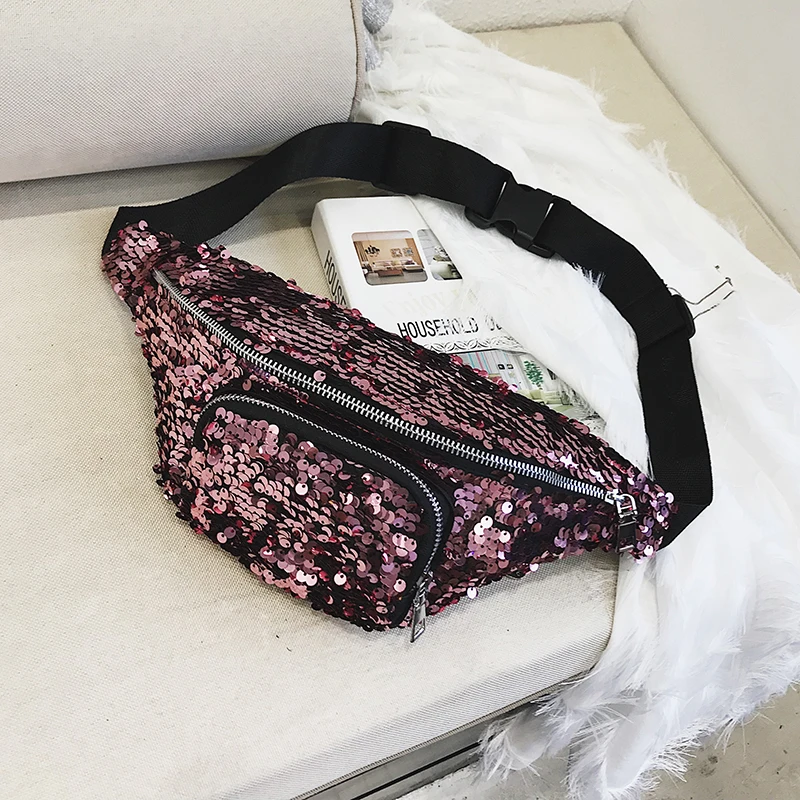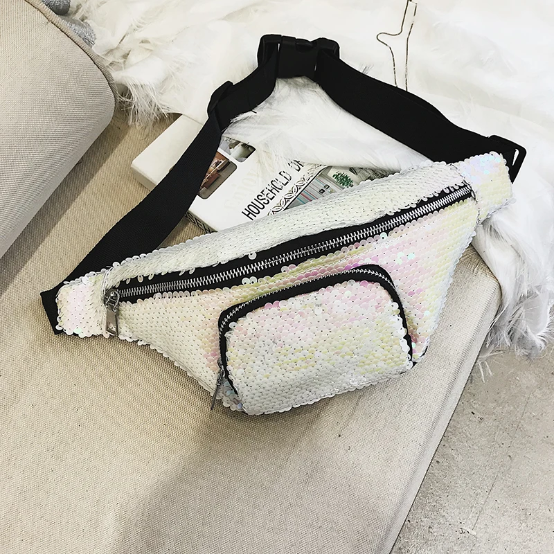 Unisex waist fanny Bag:2018 New Arrival High Quality Double Color Sequins Waist Bag