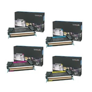 Lexmark C734 4-Pack Genuine Return Program Toner Cartridge Combo Set. C734A1KG Black, C734A1CG Cyan, C734A1MG Magenta, C734A1YG Yellow,