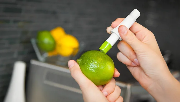 Spray it, don't squeeze it. This gadgets is designed to spray juice directly from a citrus fruit.