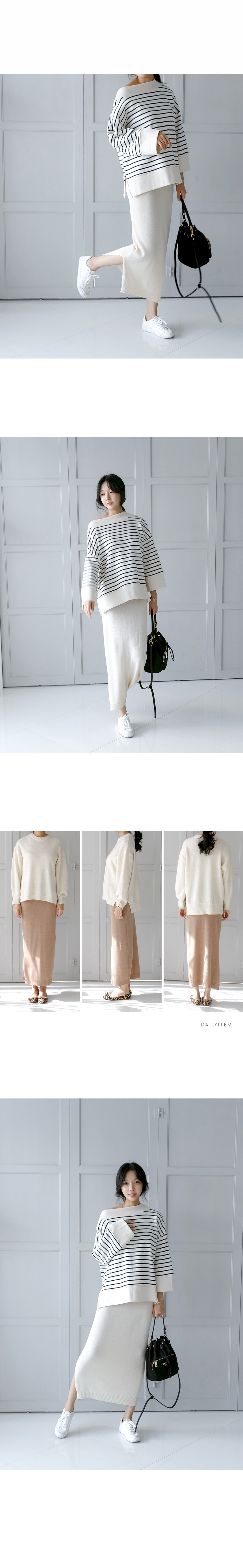옆트임 니트 스커트예요.