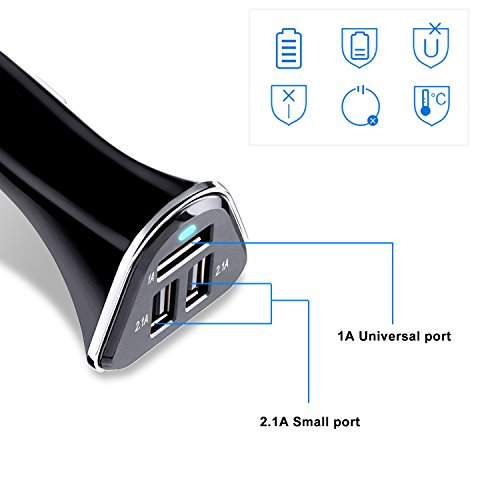 Universal 3 Port USB Car Charger, can simultaneously charges any 3 tablet or smartphone devices at full speed with 2 high-speed 2.1A USB ports and 1 high-speed 1A USB port. Just plug this Cigarette Charger into your car's, RV's or truck's cigarette lighter and connect it to your devices. And is compatible with all standard cigarette lighter sockets in every car, RV or truck.