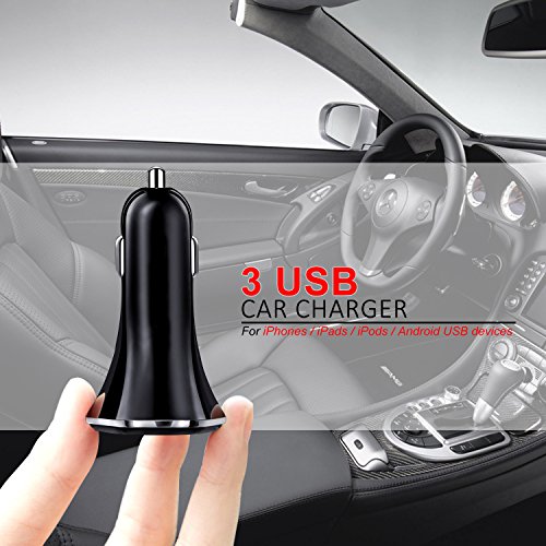 Car Charger, 3 Port Rapid Cigarette USB Car Charger With 5V, 5.2A, 30W for iPhone, iPad, iPod, Samsung, HTC, MP3 Players, Smartphones Tablets and more