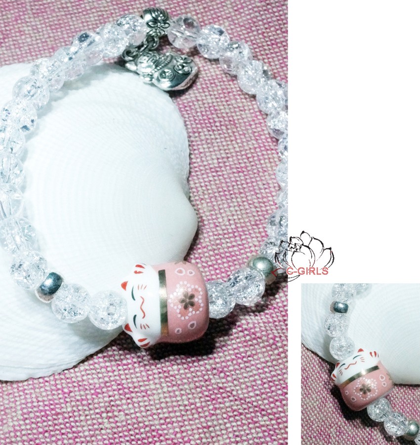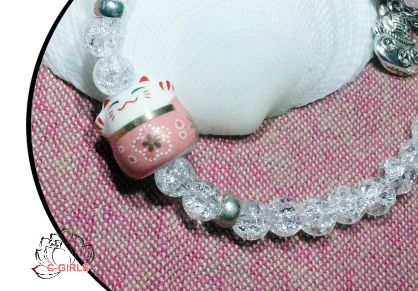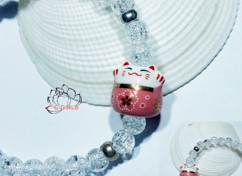 長さ:20CM 珠大きさ:0.8CM 招き猫サイズ1:1.4CM×1.3CM 招き猫サイズ2:1.5CM×1.2CM