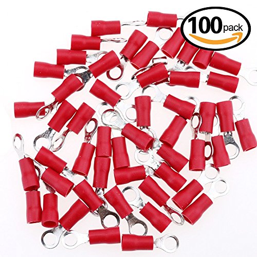 Glarks 100pcs 22-16 Gauge M4 Ring Electrical Insulated Quick Splice Crimp Terminals Connectors