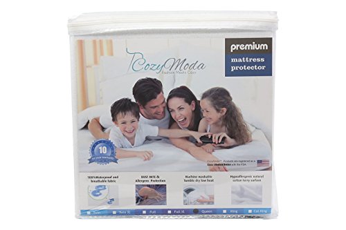 -. Title : CozyModa Premium Hypoallergenic 100% Waterproof mattress protector Cotton Terry Noiseless-Vinyl Free