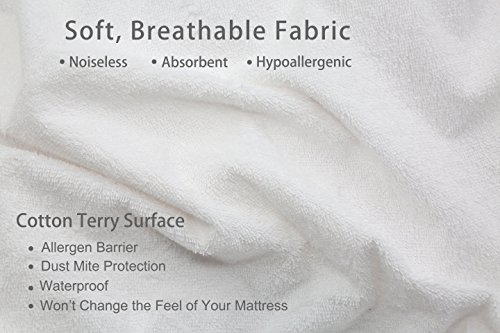 -. Feature : 100%Waterproof and breathable farbic / DUST MITE &Allergens Protection / Hypoallergenic natural cotton terry surface-noiseless / Machine washable Tumble dry low heat / Fitted Sheet Style Design - Twin Size Mattress Protector 39" x 75" - Fits up to 14" deep