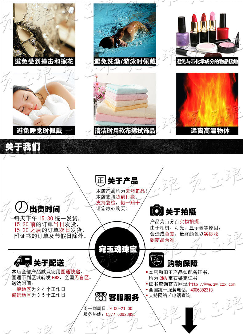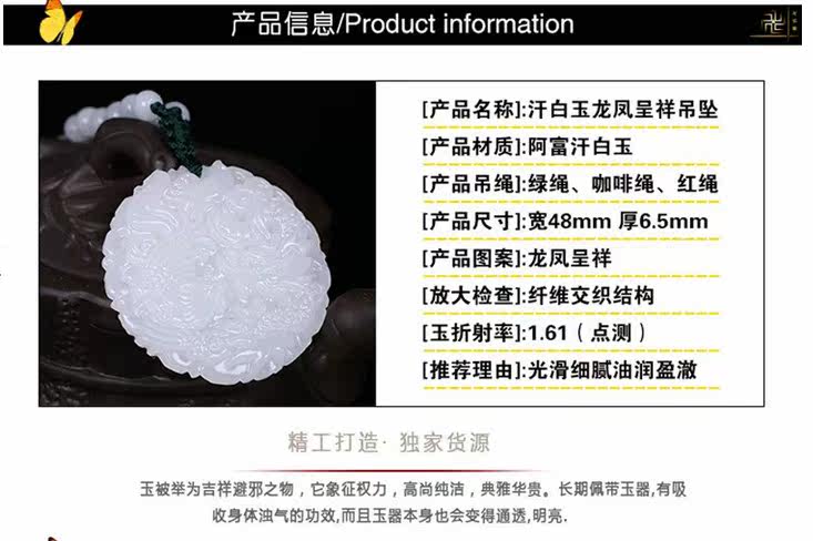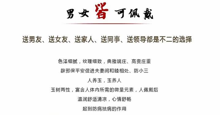 100% 还是100% 我们所售商品为100%真品天然汗白玉,虽然档次有高低,价格有区别,但是我们郑重承诺此宝贝无仿品,无人造 无假货 ,全部为天然白玉!必须的!!!汗白玉,玉色如凝脂,油脂光泽,精光内蕴,厚质温润,脉理坚密,水灵通透,迎着阳光,似有玉液流动,轻敲之,清韵悠远,历久不绝,灵异神奇。