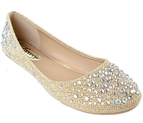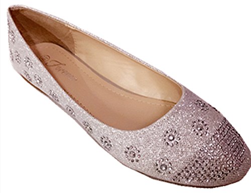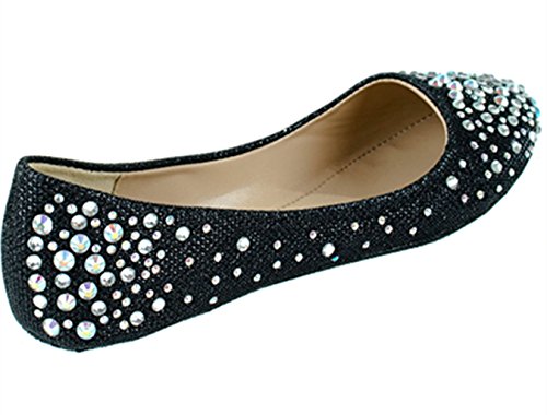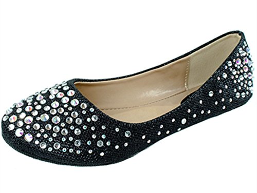 Larisa Women Bling Sparkling Rhinestone Glitter Slip Loafer Ballet Flat Shoes