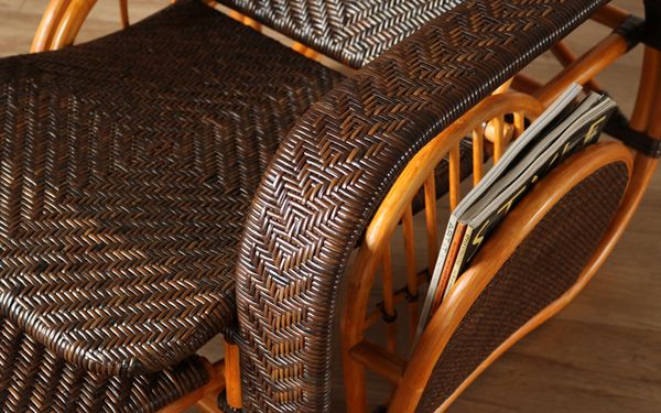 ●ゆったりとした優雅な時間を過ごせるラタン製リクライニングチェア。