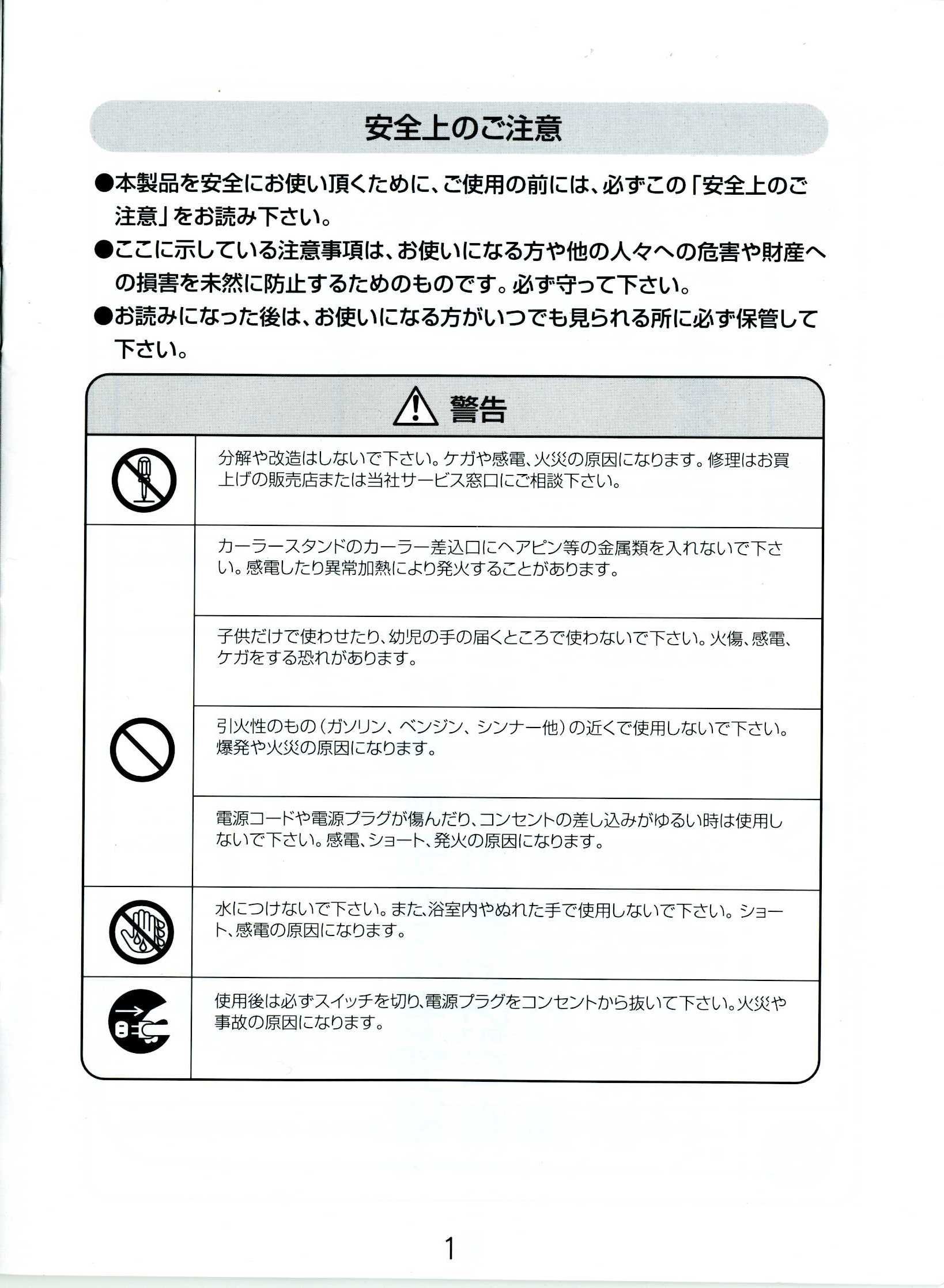 ● After use, please be sure to unplug the plug from the outlet.
