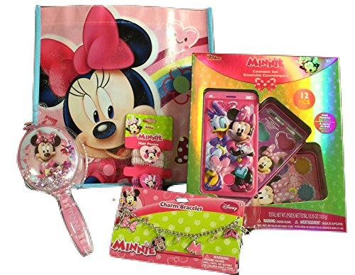 -. Title : Minnie Mouse Beauty Pack, Glitter Hair Brush, Cell Phone Lip Gloss Case, Hair Ponie Set, Charm Bracelet in Reusable Minnie Tote Bundle of 5 items