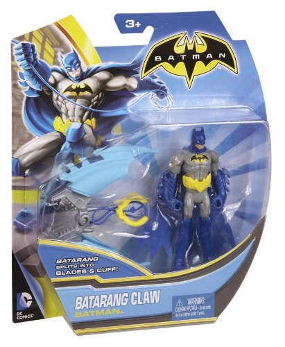 -. Binding : Toy -. Brand : Mattel -. Color : Gray -. EAN : 0746775335793 -. Feature : DC Super Heroes and DC Super Villains are ready to battle it out / Highly detailed 4-inch figures / Features iconic colors, expressions and styling / Includes 1 figure and 1 massive cool accessory / Collect all your favorite DC Superheroes and Villains -. IsAdultProduct : 0 -. Label : Mattel -. Manufacturer : Mattel -. Model : BHC67 -. MPN : BHC67 -. PackageQuantity : 1 -. PartNumber : BHC67 -. ProductGroup : Toy -. ProductTypeName : TOYS_AND_GAMES -. Publisher : Mattel -. Size : Standard -. Studio : Mattel -. Title : Batman Batarang Claw Batman 4" Action Figure -. UPC : 885399795634 -. Warranty : No Warranty