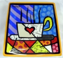 -. Title : Romero Britto Square Side Plate-(Coffee Cup)