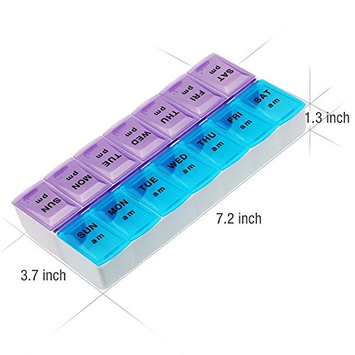 EXCEPTIONAL DESIGN: The pill organizer has a contoured design for easy pill removal. It includes fourteen large compartments and lets you store medicines in bulk. The box comes in bright and attractive colors.