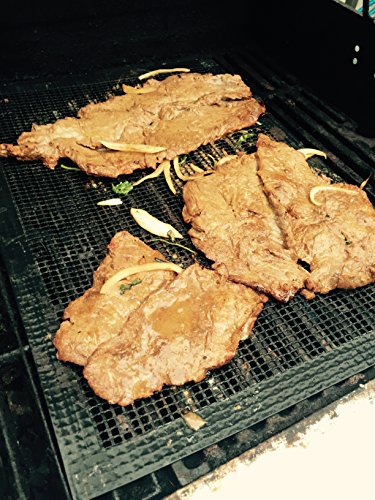 • Non-stick reusable fiberglass/silicone grill mesh keeps food off dirty grill grates. • No char or aluminum. Healthy alternative. • Extra thick material - last a long time • Open mesh allows smoke flavor to penetrate food • Fish and vegetables will not stick or fall through grate. • Eco-friendly storage tube for safe mat storage.