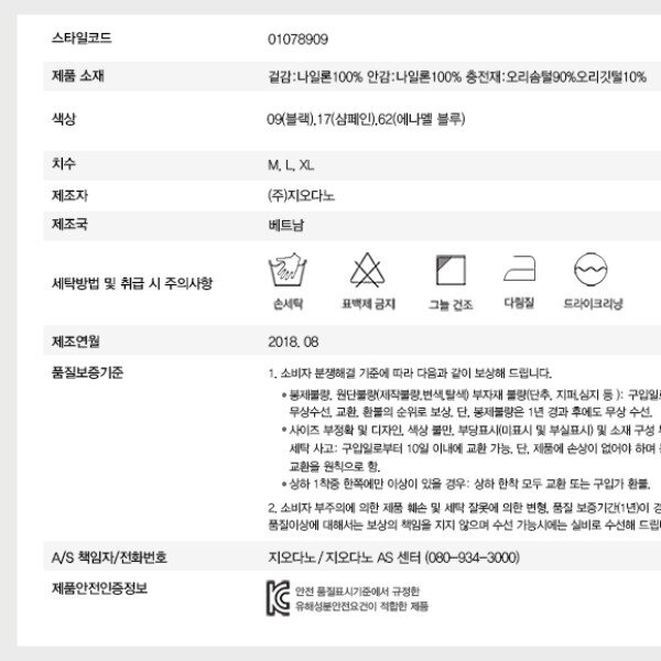 프리미엄 다운으로 솜/깃털의 함량을 90/10로 하여 더욱 따뜻하고, 다운팩이 없이 더욱 가볍습니다베이직핏으로 아우터 안에 레이어드 하거나, 간절기 시즌에는 아우터로 착장하여 여름을 제외한 모든 계절에 입기 좋습니다