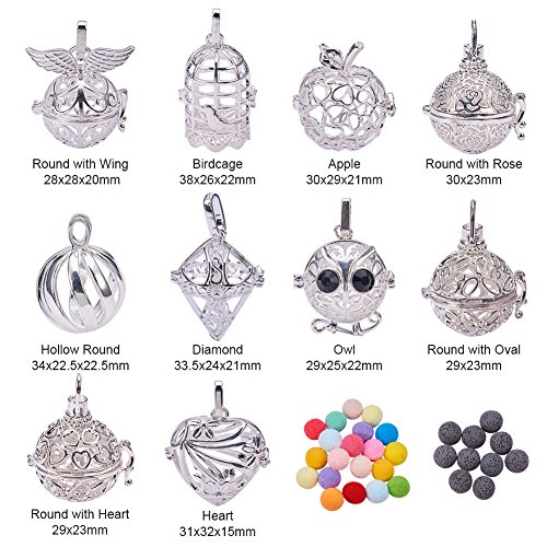 BENECREAT 10PCS Mixed Shape Hollow Silver Plated Bead Cage Pendant Oil Diffuser Pendant - Perfume Fragrance Essential Oil Aromatherapy Diffuser Charms Pendant Necklace
