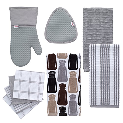 - COORDINATES WITH T-FAL TEXTILES COLLECTION. The entire color collection of T-Fal textiles includes dish cloths, striped and printed kitchen dish towels, and heat protection. The T-Fal color collection offers a wide variety of colors sure to coordinate with your existing kitchen decor.