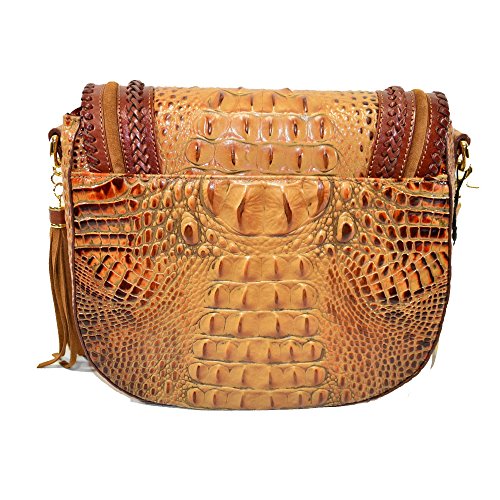 -. Title : Brahmin Sonny Toasted Almond Croco Crossbody