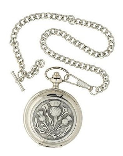 -. Feature : Mechanical Pocket Watch with Highland Thistle Design / Supplied with Chain and Presentation Box / This Mechanical Pocket Watch is a 17 Jewel Full Hunter where both sides open. / Wind Up Watch with 12 inch Fob Chain / Made in Scotland