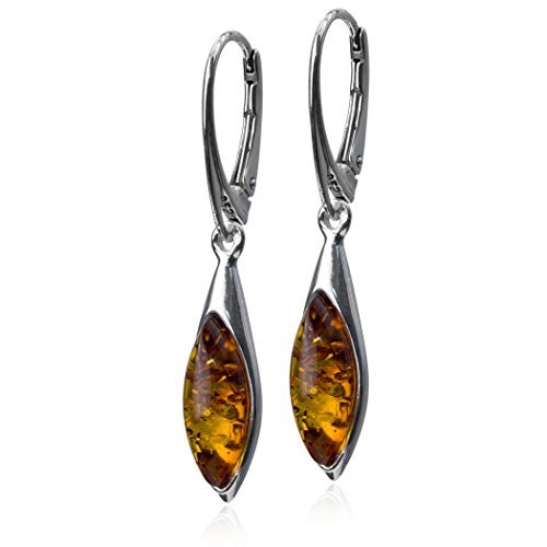 -. Title : Sterling Silver Amber Marquise Drop Leverback Earrings Necklace Set 18 Inches
