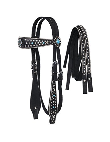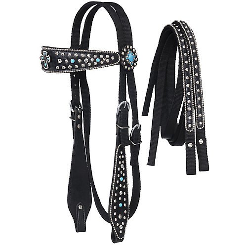 Studio : JT International Publisher : JT International Binding : Misc. Product Description Tough-1 Eclipse Starlight Turquoise Cross Headstall with Reins The Starlight Collection nylon browband headstall features reptile print overlay with round turquoise and silver dot accents. Features turquoise accented cross conchos. Size: Average Horse 0